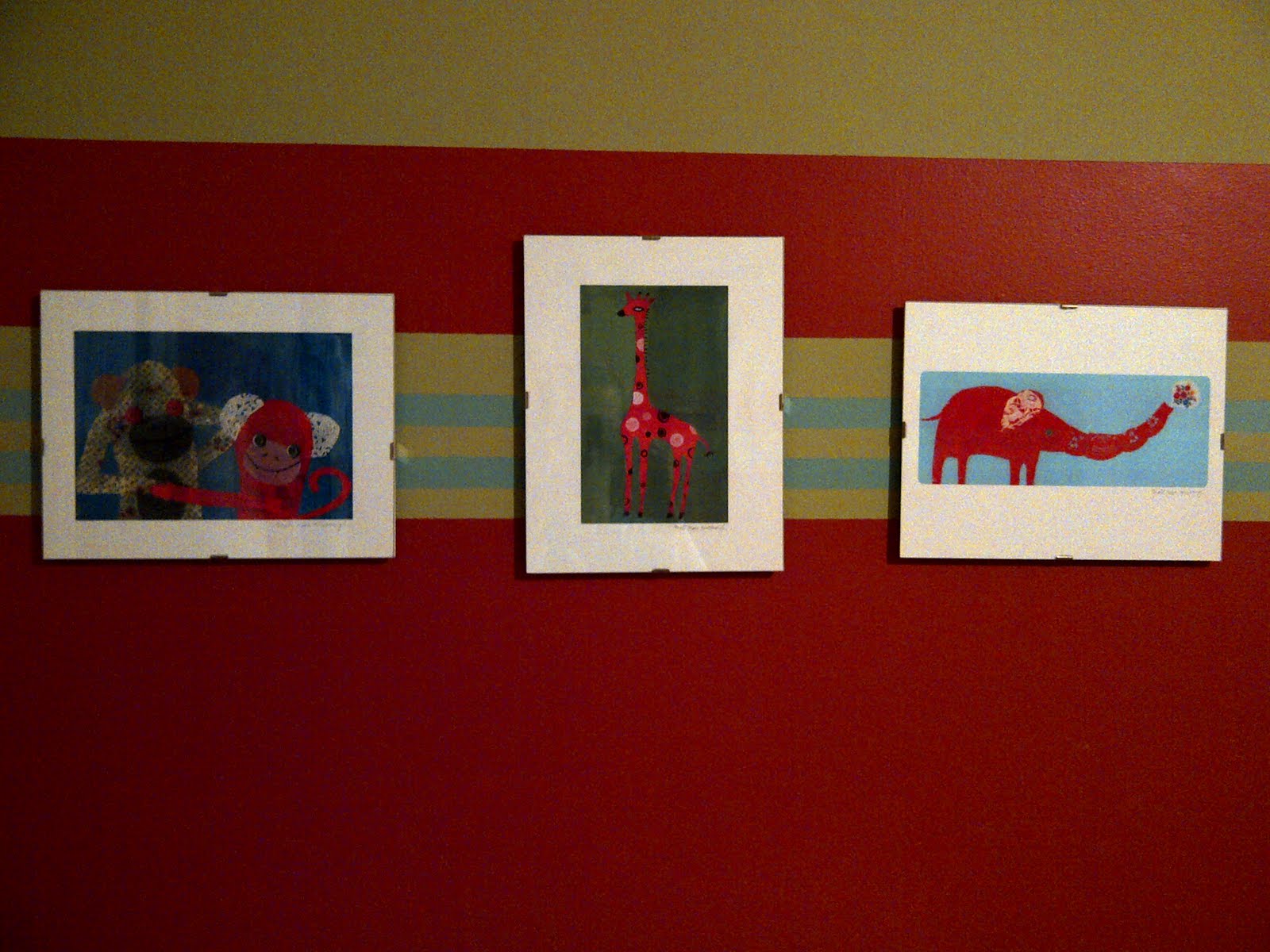 baby ben’s room with my old school monkeys, giraffe and elephant trio (love the striped wall):
